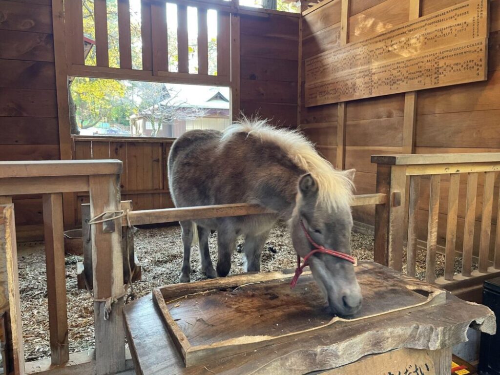 皐月(さつき)と東風(こち)の2頭の神馬がいて、神厩舎で参拝者向けに公開されています。