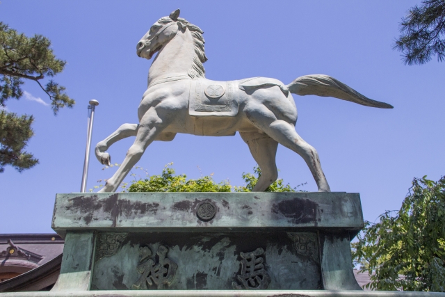 境内には馬の像も建っていて、「勝利を呼び込む神社」として信仰を集めています。